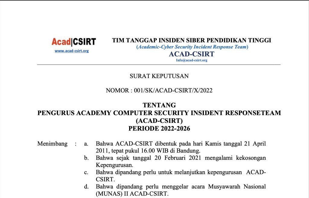 | a) Deputy 1 (Secretary Generale) | : Muhammad Ainur Rony, S.Kom, M.T.I. |